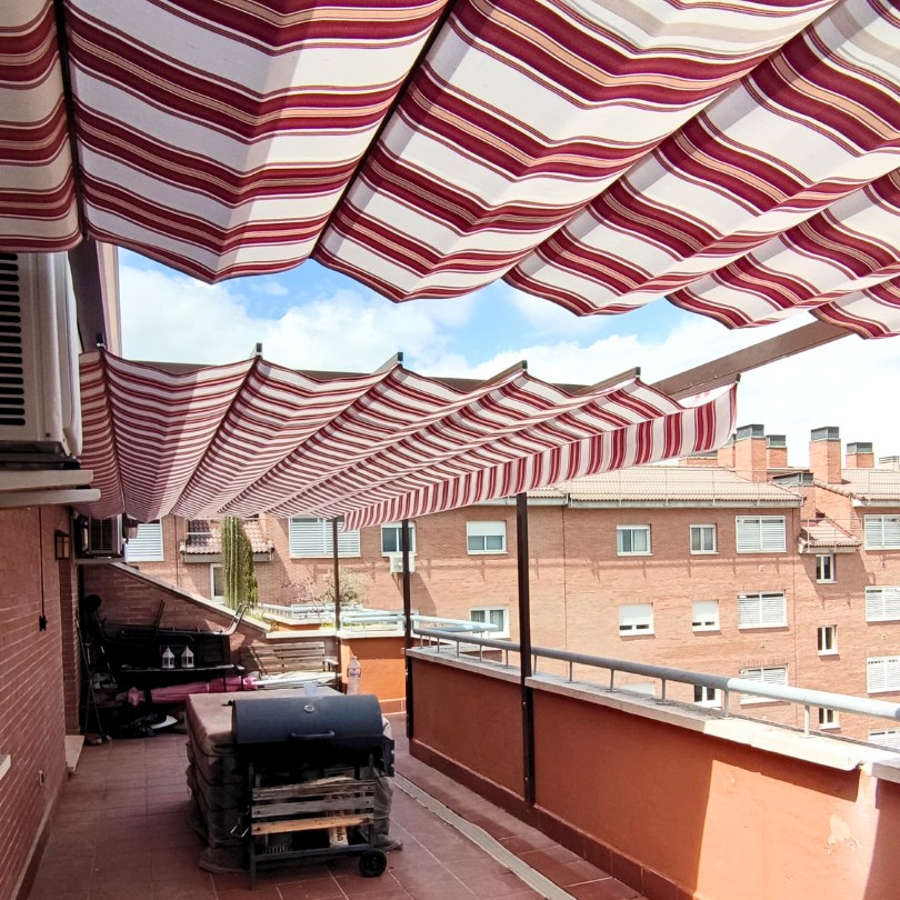 La característica distintiva del «toldo palillero» radica en la forma en que se despliega y se sostiene la lona. En las pérgolas en Madrid, la lona está sujeta por medio de palillos o varillas que se extienden horizontalmente a lo largo de la estructura. Estos palillos permiten que la lona se ajuste en ángulo, lo que proporciona flexibilidad para controlar la cantidad de sombra según las necesidades.